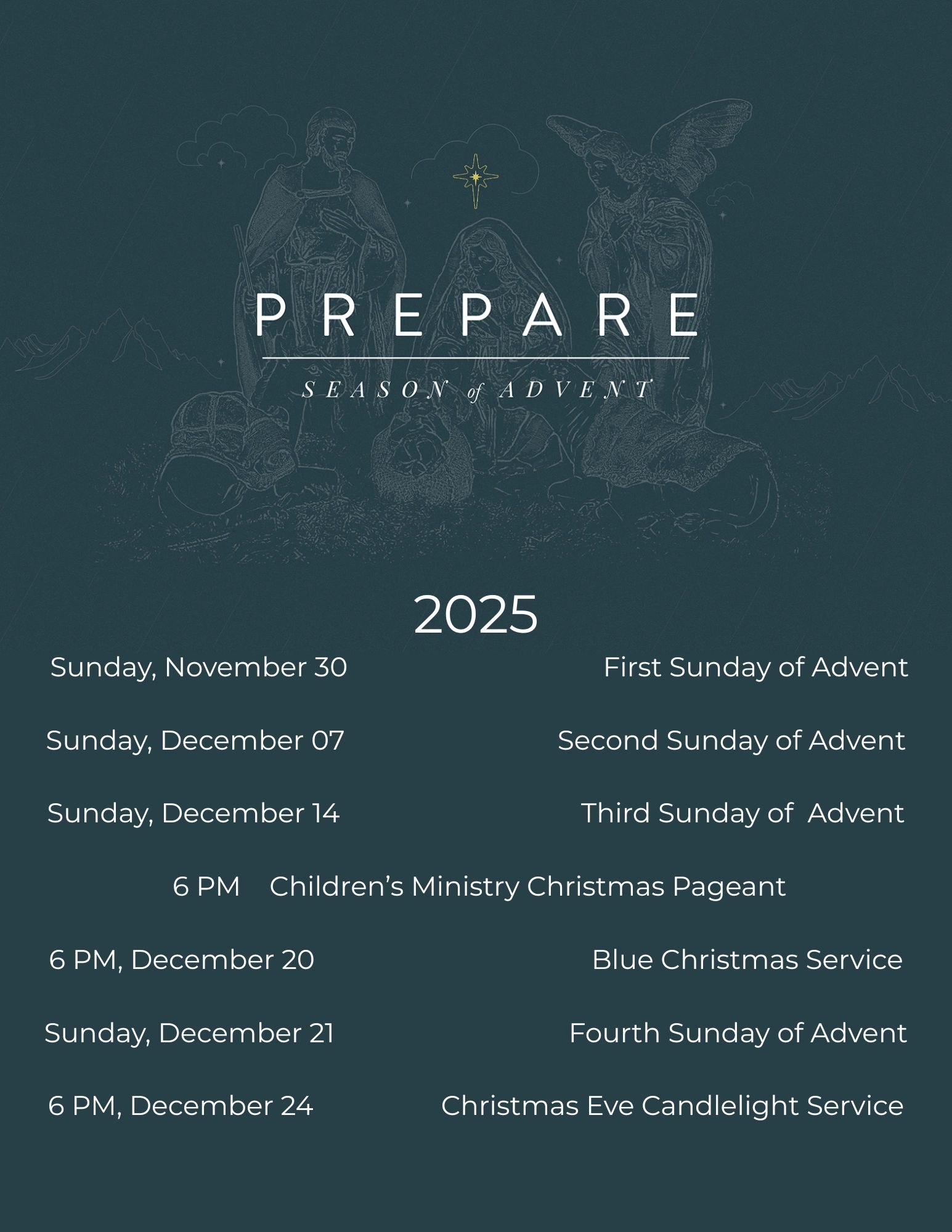Join us for Sunday School at 9 am, Worship at 10 am, and Wednesdays at 5:30 pm.